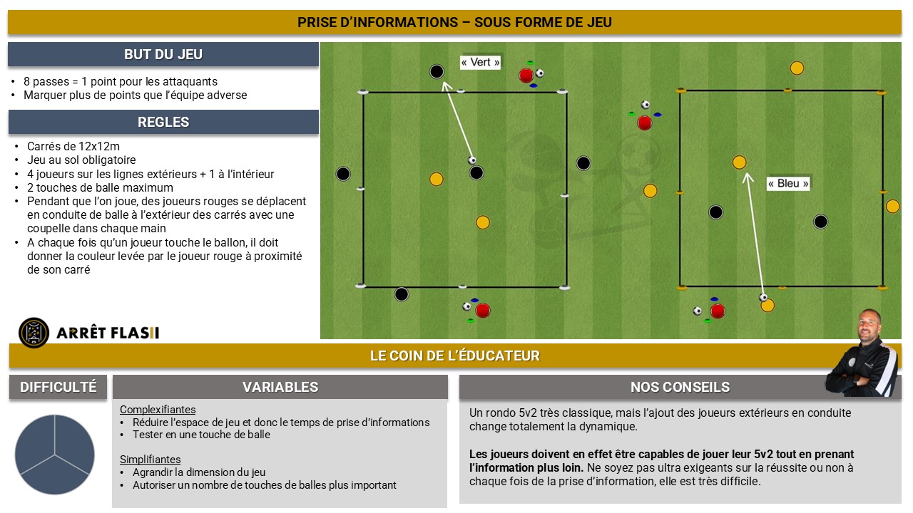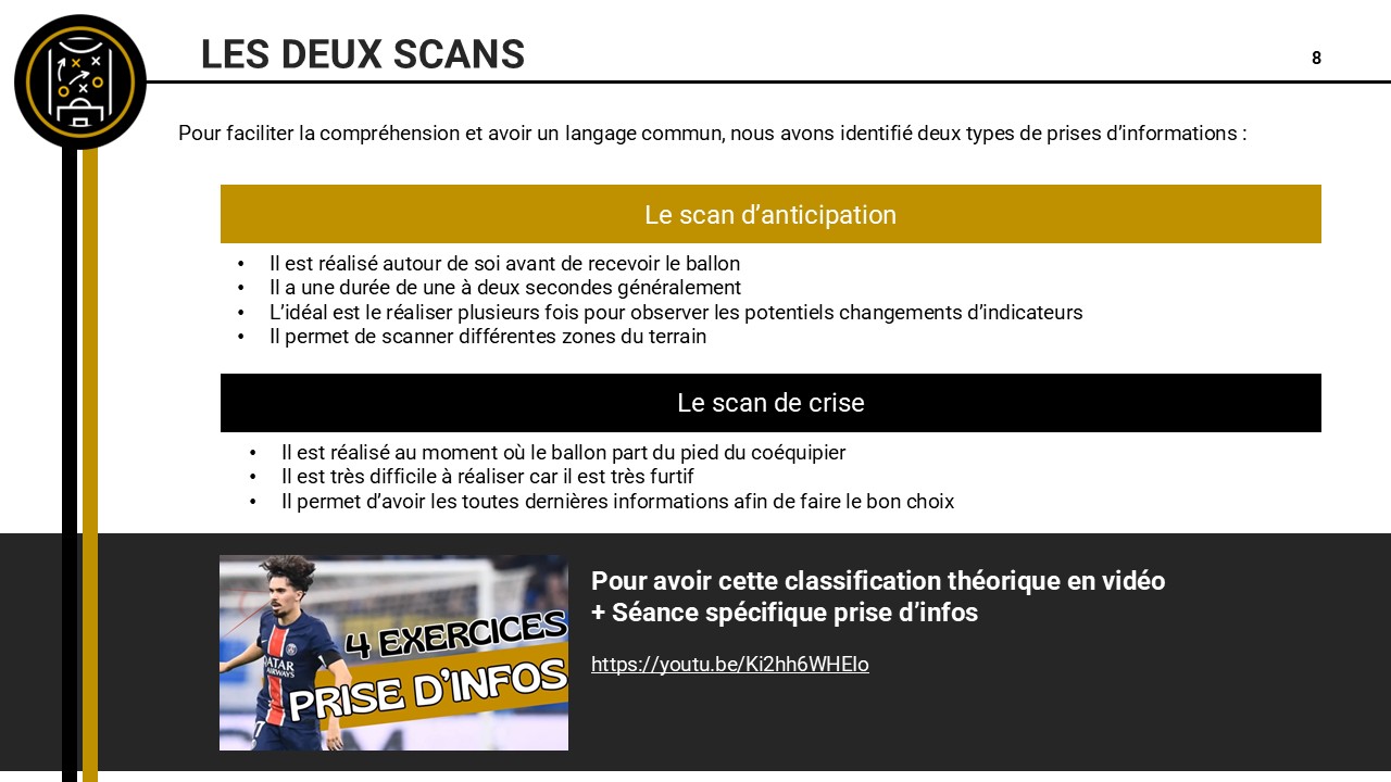c’est tres interessant et c’est un sujet qui me passionne car nous parlons de technique physique etc ….mais que trop rarement de la prise d’info. qui est a mon sens super important moi mon « dada » avec mes éducateurs c’est « faire des joueurs intelligents » cela commence par la réflexion lorsque les joueurs rentrent sur le terrain : l’equipe a le ballon nous devons faire quoi? etc sans ballon etc dans les transitions..